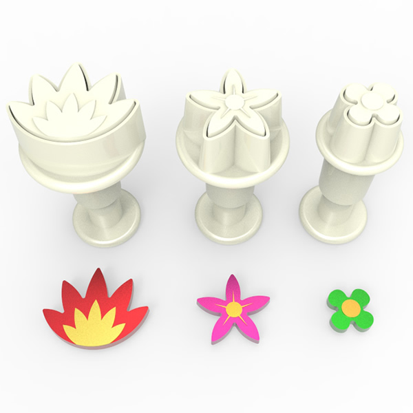 Açtığınız şeker hamurunu basmalı şekillendiriciler ile keserek hem desen istediğiniz şekli elde edip hem de transferi gerçekleştirebilirsiniz.