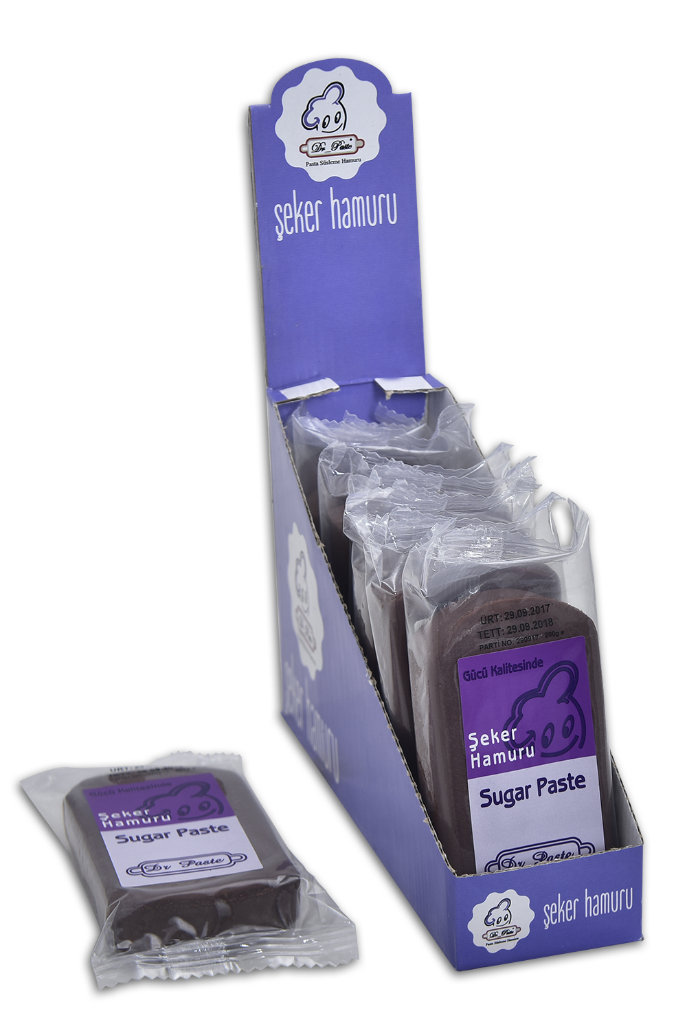 Dr Paste şeker hamuru ISO 9001 ve ISO 22000 Kalite belgelerine sahip,el değmeden üretilmiş,sağlıklı,mükemmel kokulu ve lezzetli özel bir hamurdur.Diğer şeker hamurlarına göre daha yumuşak ve esnektir.Pasta,kurabiye ve diğer şeker hamuru ile yapılan kaplamalarda çatlama yapmadığı gibi istenilen her şekli rahatlıkla alabilir.