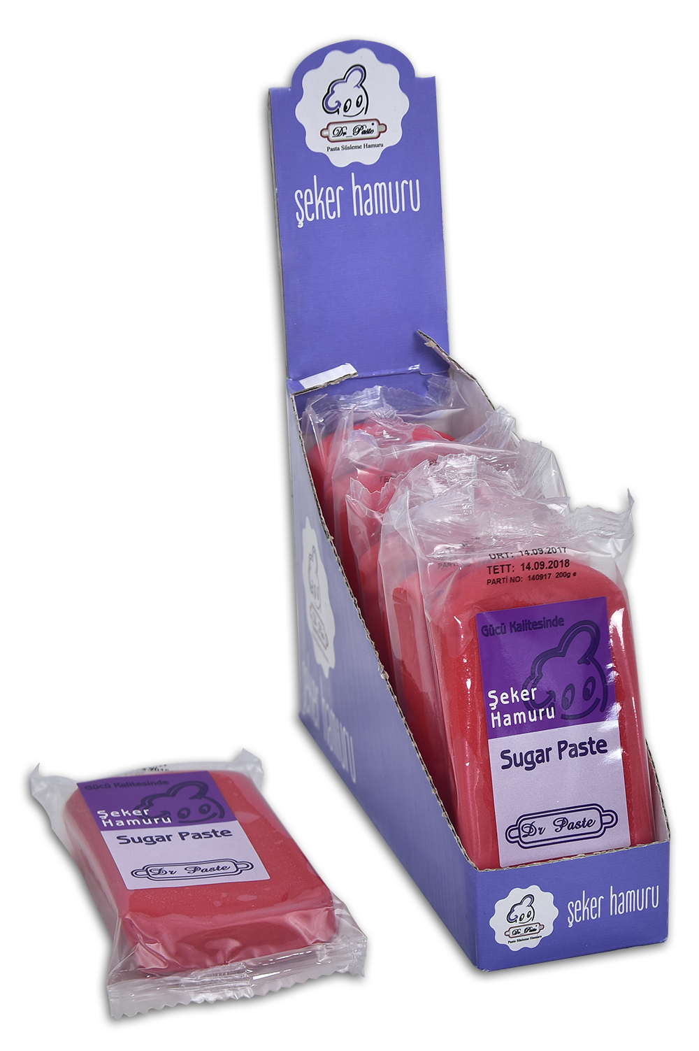 Dr Paste şeker hamuru ISO 9001 ve ISO 22000 Kalite belgelerine sahip,el değmeden üretilmiş,sağlıklı,mükemmel kokulu ve lezzetli özel bir hamurdur.Diğer şeker hamurlarına göre daha yumuşak ve esnektir.Pasta,kurabiye ve diğer şeker hamuru ile yapılan kaplamalarda çatlama yapmadığı gibi istenilen her şekli rahatlıkla alabilir.